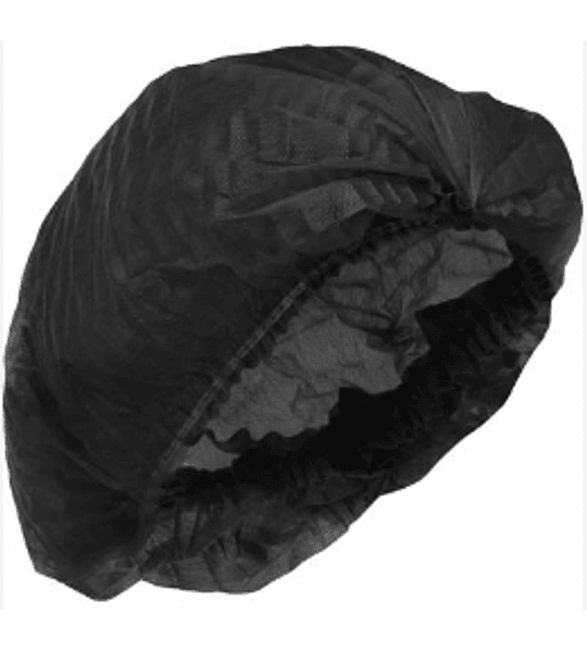 Cofia desechable color negro. Embalaje con 10 bolsas de 100 unidades cada una.